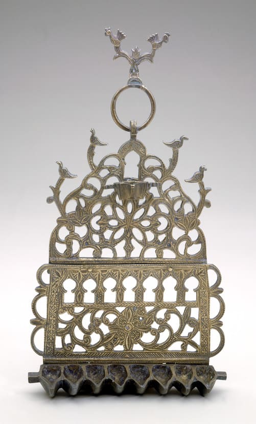 This lamp has been attributed to the Anti-Atlas Mountains in the southwest of Morocco based on similarities to other works with this type of cast workmanship. However, in the twentieth century, the lamp type was also produced or at least used in Sefrou and Rabat further to the north, as evidenced by a mold for a related type that was created in Sefrou around 1940 and by examples collected in Rabat.