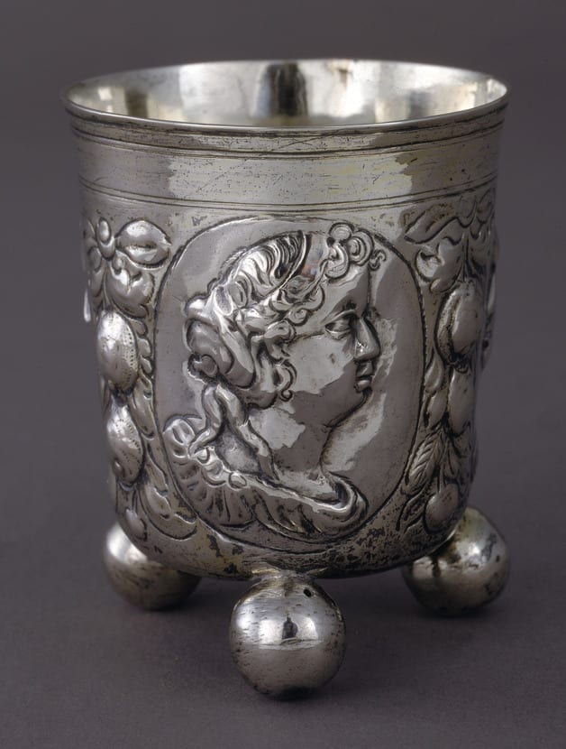 These Roman portrait medallions indicate a secular origin for this beaker. Already two hundred years old at the time of its purchase by the donor's grandfather, this prized object then served as a Kiddush cup for three generations.