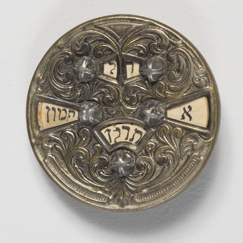 - Copper alloy: silver-plated and cast; ink on parchment