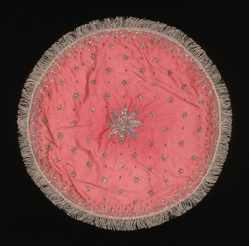 - Cotton: embroidered with tinsel and thread; ribbon